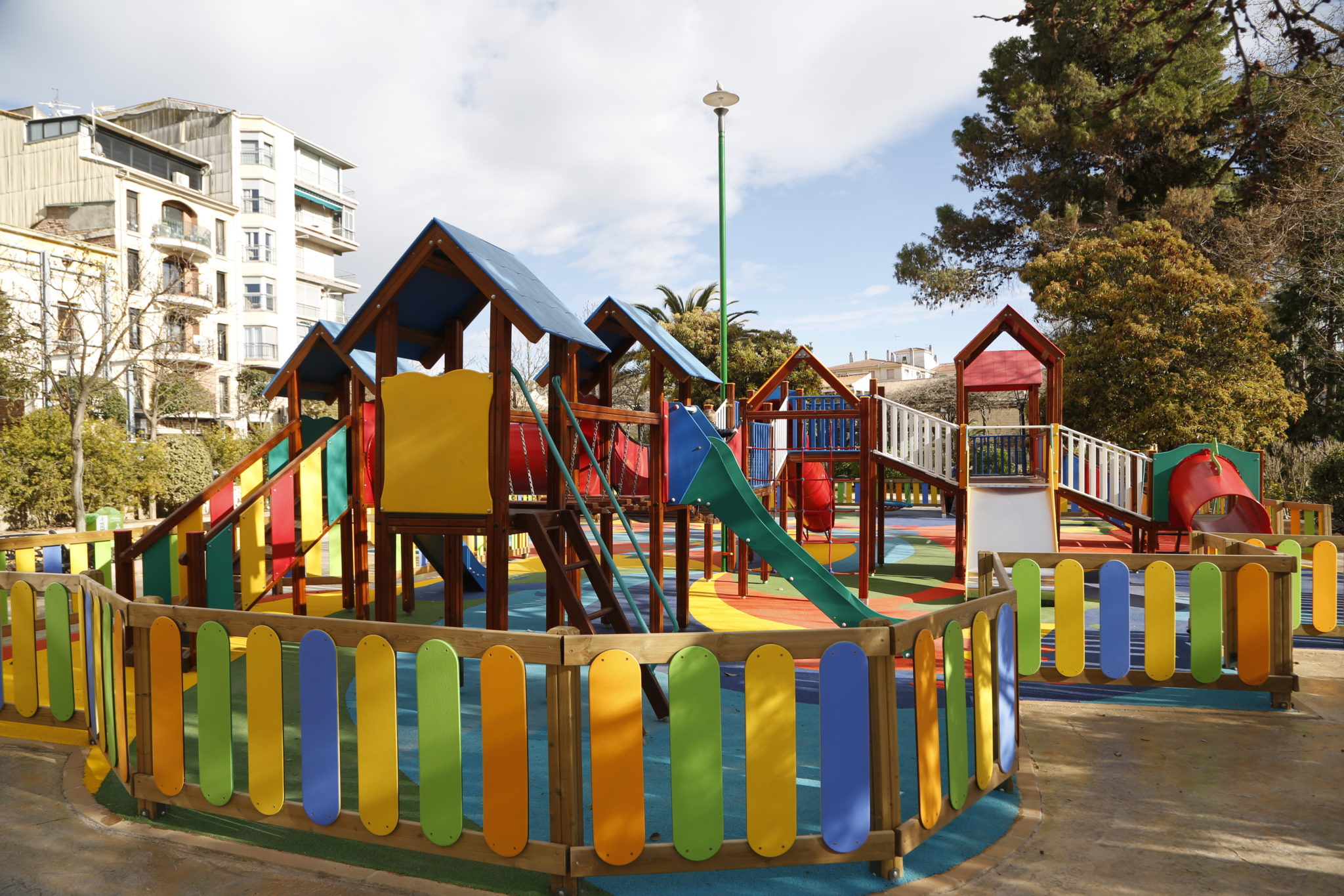 También se sustituyó el albero perimetral por hormigón impreso para facilitar el mantenimiento, se reforzó la iluminación del parque y del Templete de los Músicos y se instaló un vallado perimetral, otra de las demandas de las familias.